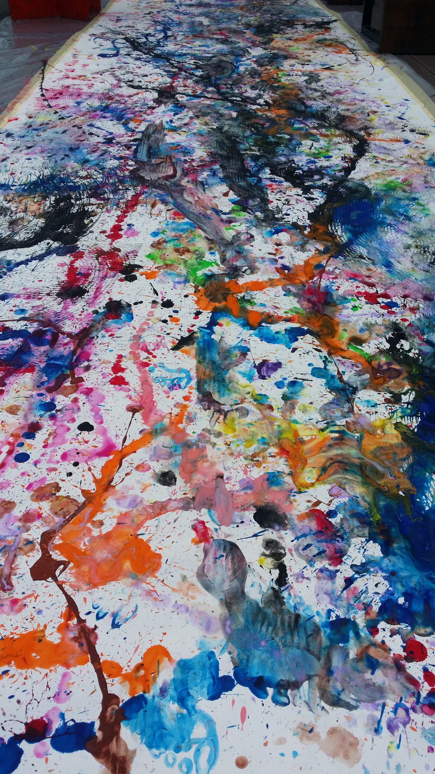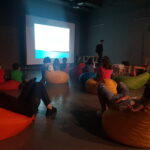 Mai întâi, în prima parte, coregrafia unei picturi, am prezentat copiilor participanți câteva picturi celebre în istoria artei, în genul compoziției figurative dinamice, cu mai multe personaje. Invitata modulului, Mia Iosif i-a încurajat și ajutat pe copii să ia posturile personajelor din imagini și să reproducă mișcarea acestora. În partea a doua a acestui modul, pictura unei coregrafii, am propus copiilor să întoarcă experimentul de oglindire a picturii în mișcare, realizând o coregrafie prin care să lase urme colorate.